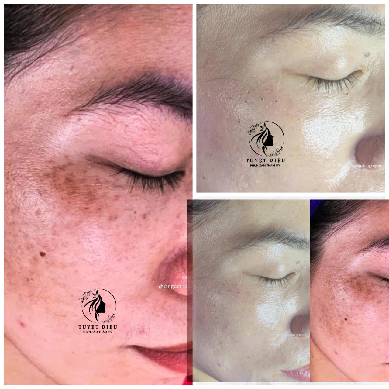 Hình ảnh trước – sau liệu trình sáng da giảm thâm nám tại Thẩm Mỹ Viện Tuyệt Diệu cho thấy sự cải thiện vượt trội: các đốm nám đậm màu và thâm sạm lâu năm dần mờ đi, sắc tố da đều màu hơn và bề mặt da trở nên mịn màng, căng khỏe thấy rõ. Liệu trình được thiết kế chuyên sâu giúp hỗ trợ giải quyết nhiều vấn đề như nám do nội tiết, nám chân sâu, thâm sau mụn và da xỉn màu do nắng, đồng thời tăng cường hàng rào bảo vệ da để hạn chế nguy cơ tái nám. Công nghệ hiện đại kết hợp phác đồ chuẩn y khoa giúp kích thích tái tạo tế bào, mang lại làn da sáng tự nhiên từ bên trong, an toàn cho mọi loại da kể cả da yếu hay da nhạy cảm. Trải nghiệm dịch vụ chuẩn spa cao cấp với đội ngũ chuyên viên giàu kinh nghiệm, khách hàng cảm nhận rõ rệt sự thay đổi chỉ sau những buổi đầu tiên.